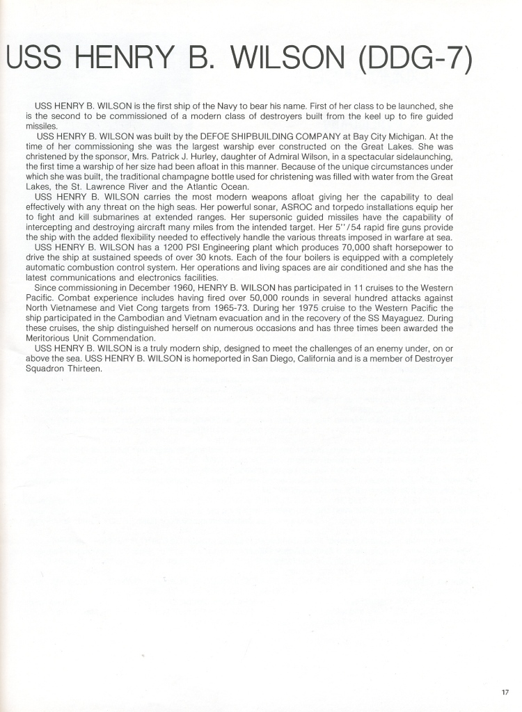 USS H. B. WILSON DDG-7 WESTPAC 1979-1980