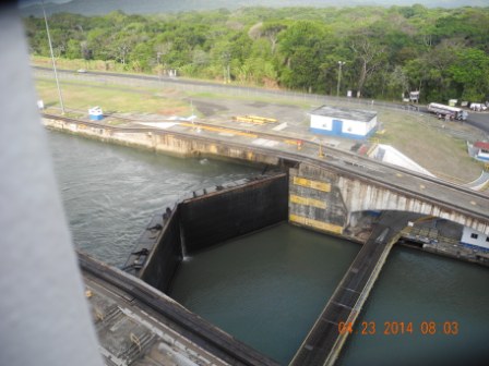 Wednesday we entered the canal from the east and went thru the Gatun Locks. this took several hours and was fascinating when you think about how the canals were constructed 100 years ago. Once we were in Lake Gatun, the people going on excursions boarded the tenders which took them to the waiting buses on shore. While we were on excursions, the ship turned around in the lake and headed back thru the locks to Colon, Panama. Our excursion took us to the Gamboa Rainforest Resort for a boat ride around some islands searching for monkeys, sloths, and other native animals. We did have several Cappuchin monkeys scamper on the bimini cover begging for treats. On the trip back to the ship we passed the prison where Noriega is being held. We were back in Colon, Panama early afternoon and the ship departed at 3:30 pm.